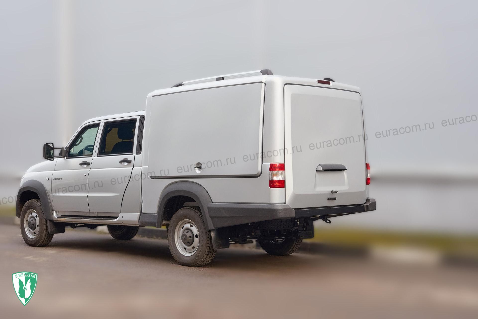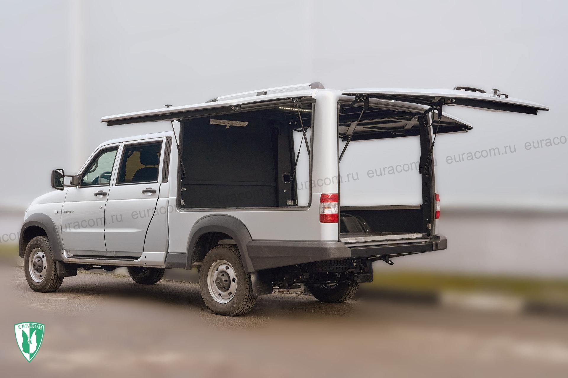 На автомобиль Евраком 284031 разработан и установлен специальный фургон повышенного объема в современном дизайне (внутренний полезный объём 2,4 куб метра). Фургон выполнен из композитных материалов. Для удобства и скорости погрузки-разгрузки кунг имеет три подъемных двери, стеллажи и систему такелажных петель для размещения и закрепления груза. Максимальная длина грузового отсека по полу - 2,4 м. Грузовое наполнение фургона может быть выполнено под различные задачи: стеллажи, изотермический, автомастерская, топливозаправочный модуль и т.д.