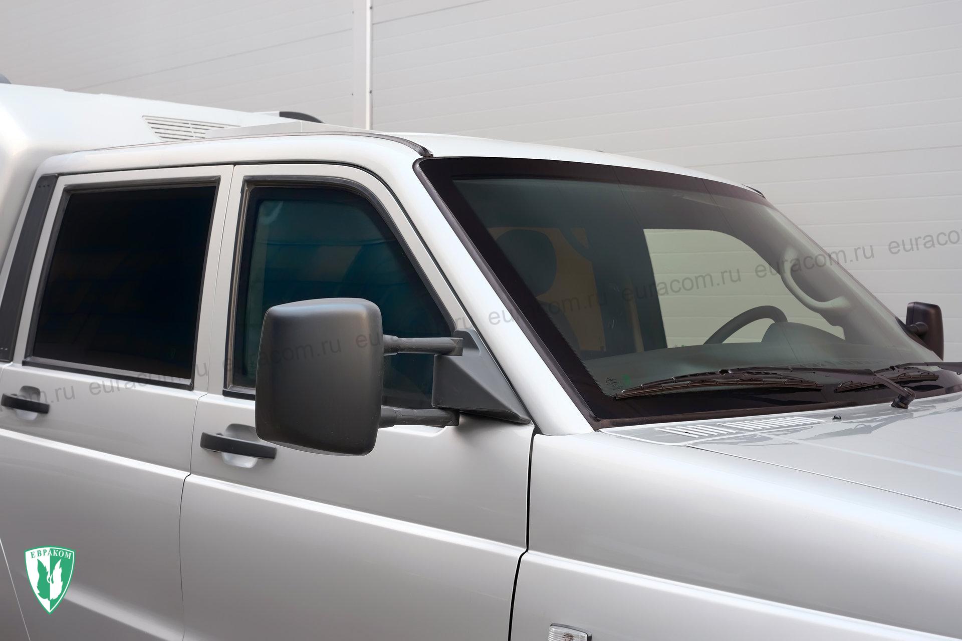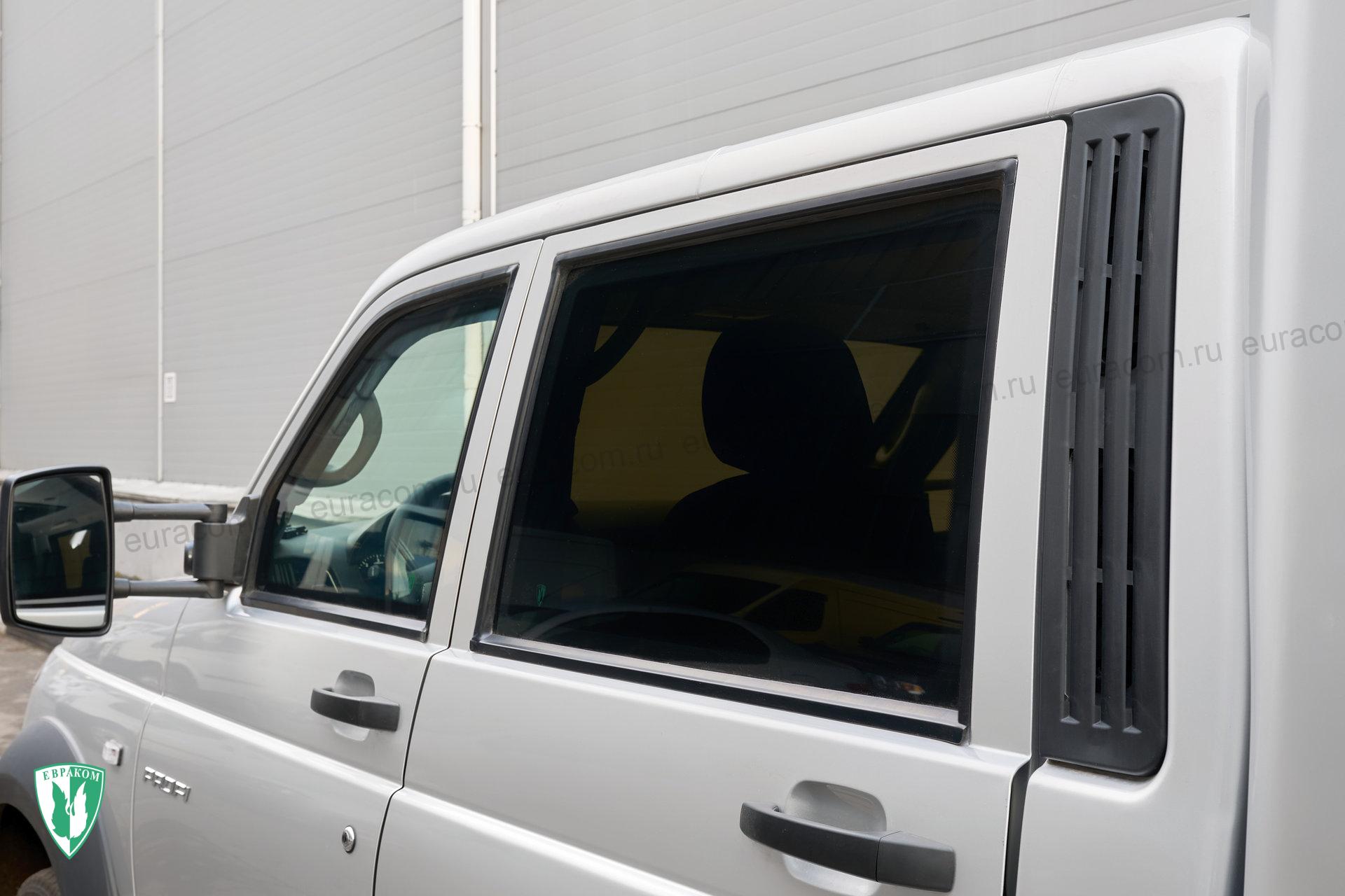 - Передние и задние стекла монолитные (без форточек) не опускные стеклоблоки.