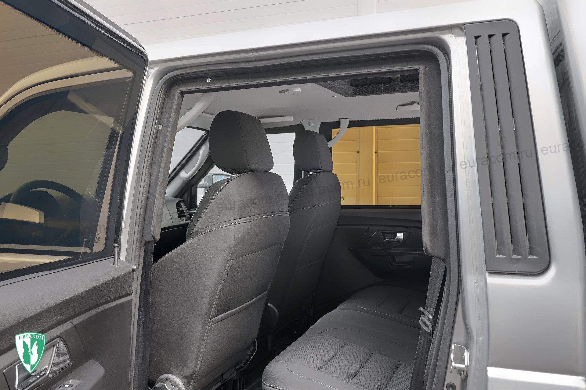 Отлично зарекомендовавший себя УАЗ 2360 «Профи» с подключаемым полным приводом и бензиновым двигателем 149 л.с. в цехах Евракома получил современную качественную скрытую капсульную бронезащиту по классу Бр3 (включая бронезащиту пола).