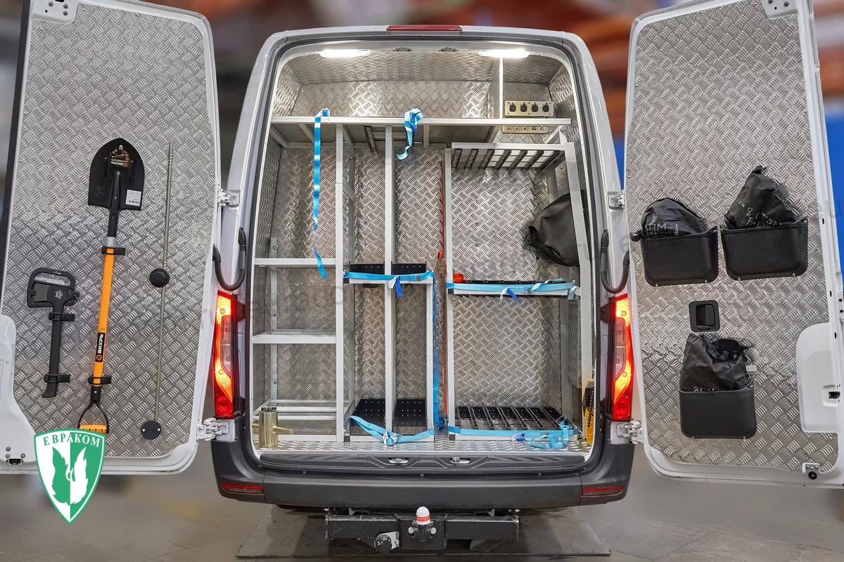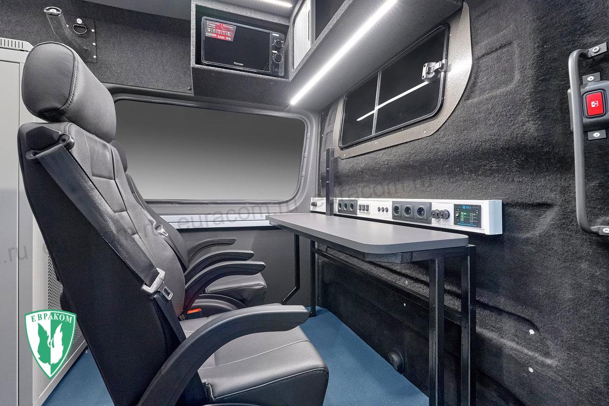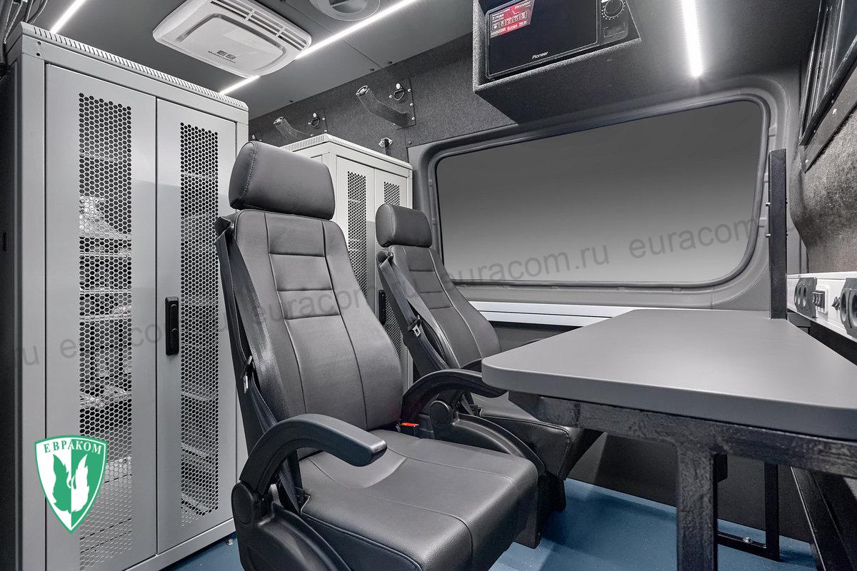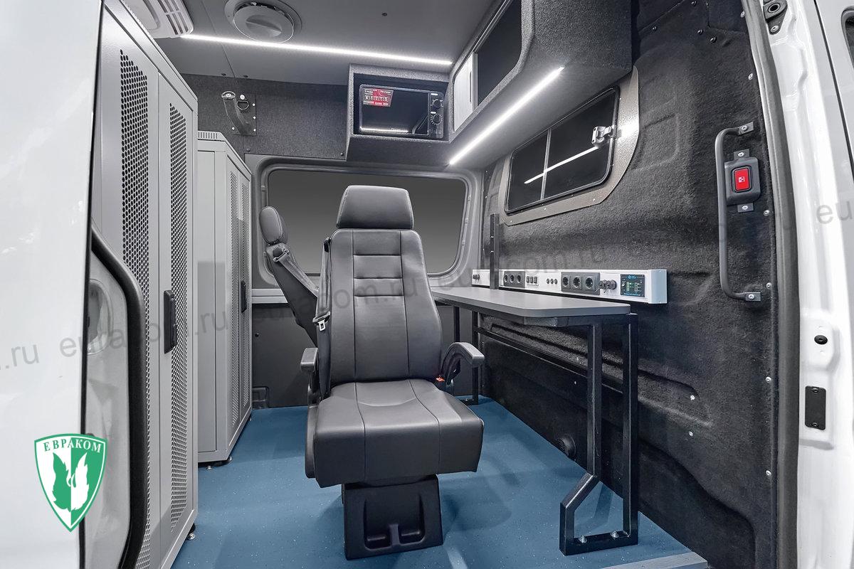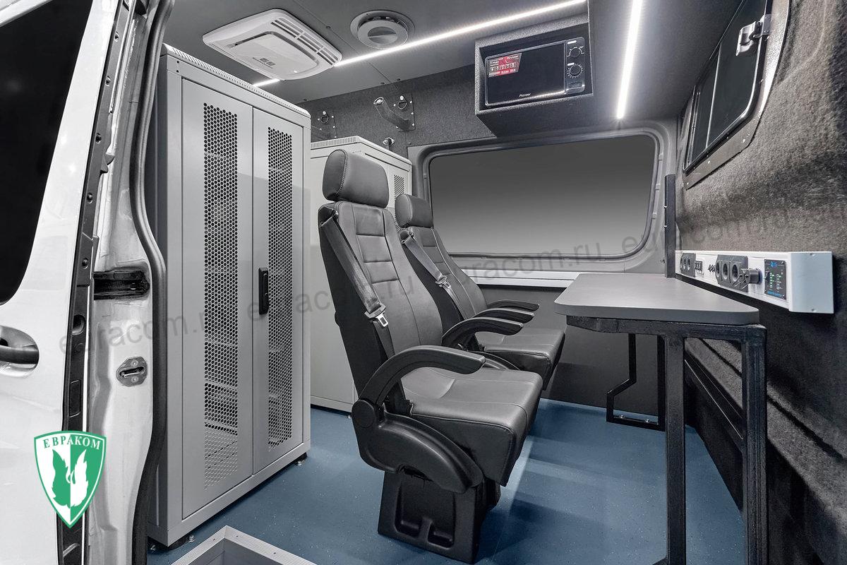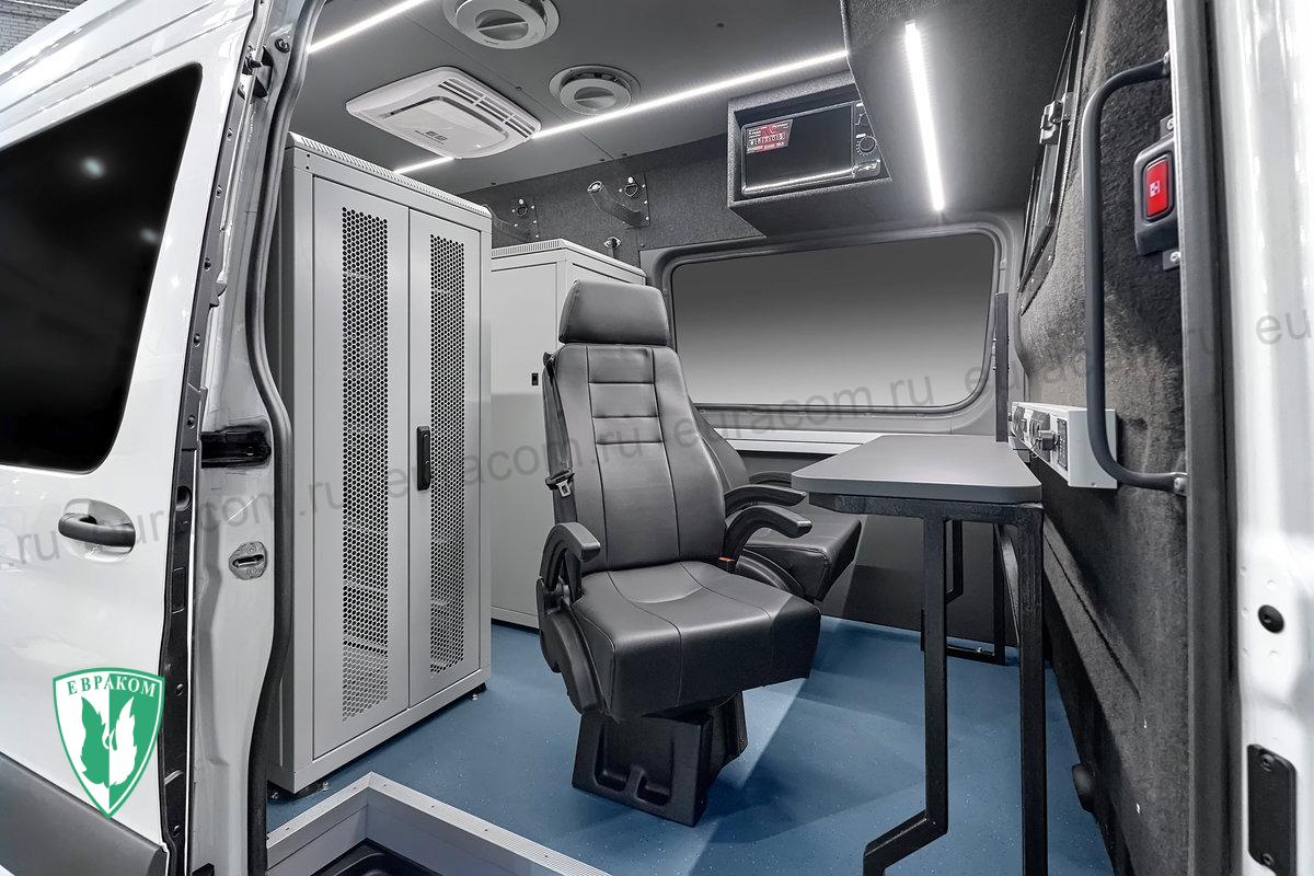 Автомобиль предназначен для решения специализированных задач. В отсеке управления установлены 2 рабочих места для операторов.