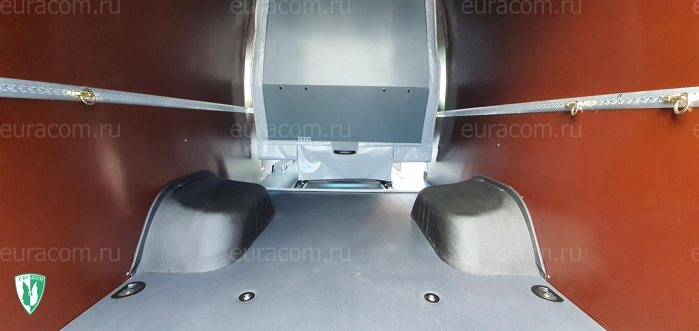 Грузовой отсек полностью отделан влагостойкой фанерой. Автомобиль оснащен боковой и задней металлическими усиленными подножками для облегчения посадки-высадки. А также двух-контурным кондиционером с отдельными дефлекторами обдува второго ряда сидений. Данная опция очень востребована в том случае, если эксплуатация транспортного средства будет проходить в регионах с жарким климатом.